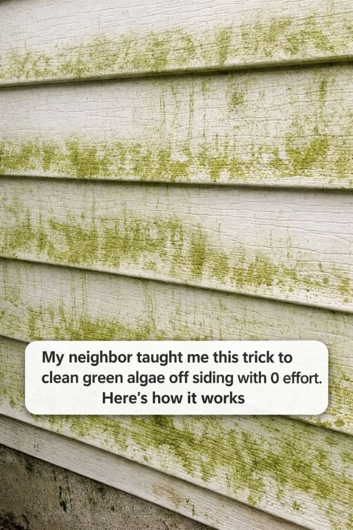 My neighbor taught me this trick to clean green algae off siding with 0 effort. Here’s how it works