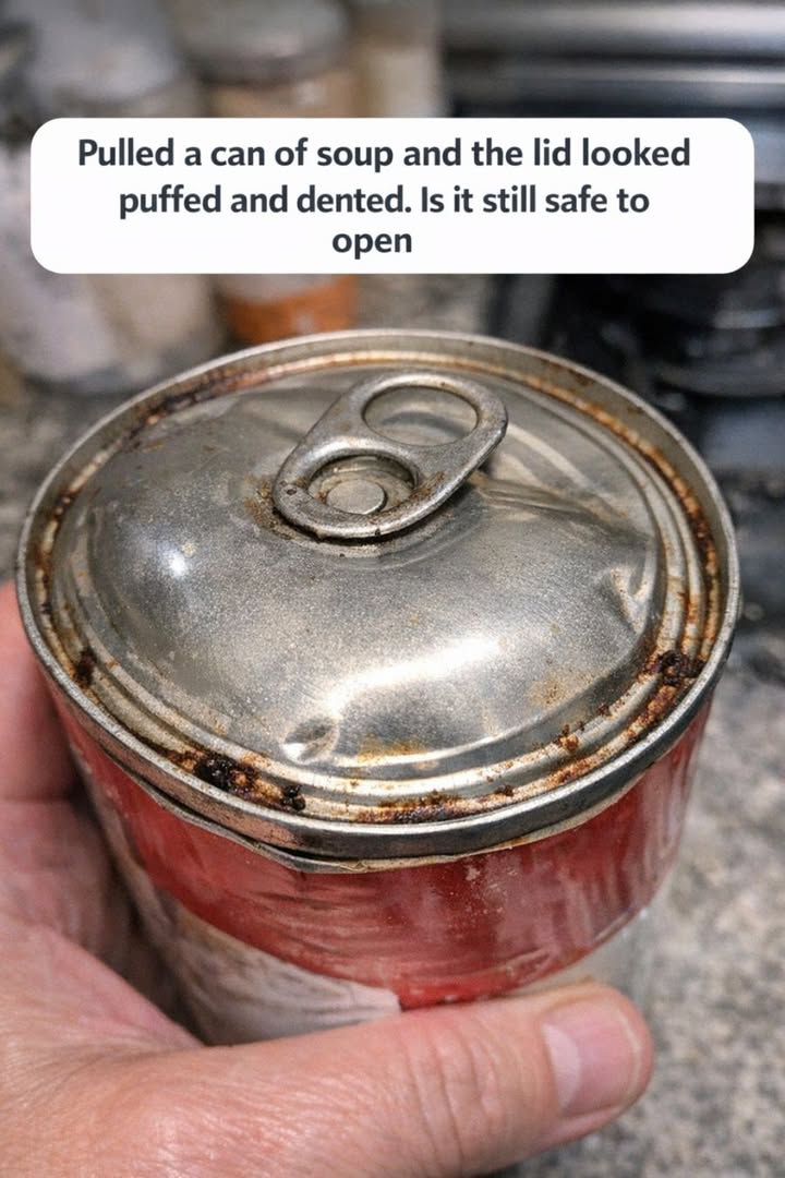Pulled a can of soup and the lid looked puffed and dented. Is it still safe to open