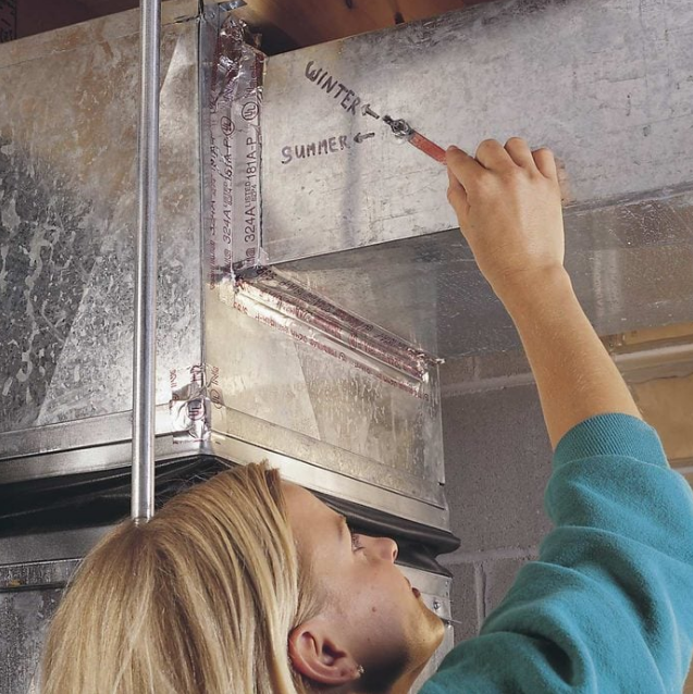 - Turn the lever so it’s in line with the duct to open, across the duct to close or restrict.
