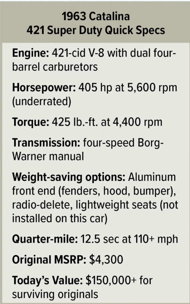 The 1963 Catalina was an integral part of Pontiac’s ambitious performance plans for the ’60s. The American muscle car was beginning to take shape, and Pontiac was right at the forefront of that movement. In fact, the Catalina of this era can be seen as the precursor to Pontiac’s famous GTO, which would arrive a year later in 1964. But before all of that, there was the Catalina — a car that offered great looks consistent with the rest of the Pontiac line, and the perfect full-size lightweight for getting the most out of Pontiac’s hottest engines.