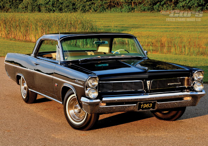 The Pontiac 421-cid V-8, introduced in 1961, was the centerpiece of the Super Duty program that year. Rated at 405 hp by 1963 (though the real number was likely closer to 450), the Super Duty engine featured forged internal components, a high-lift cam, dual Carter AFB four-barrel carburetors, and factory long-tube headers.