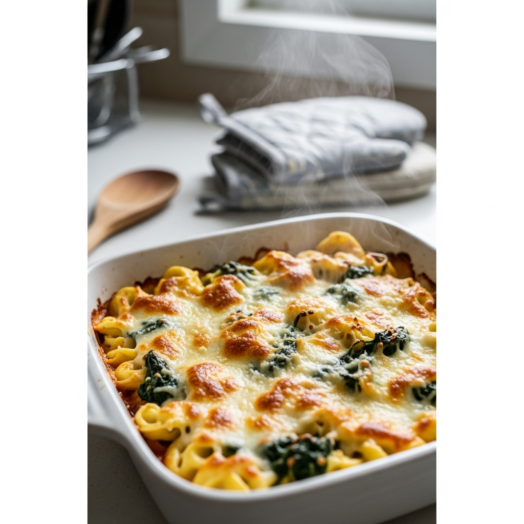 Cheesy Spinach Tortellini Bake
