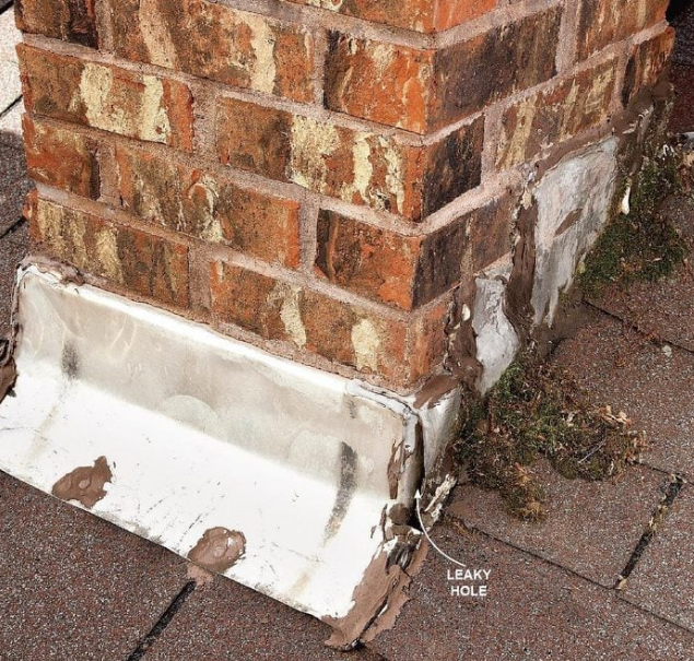 - Rusted galvanized chimney flashing, especially on the downhill side