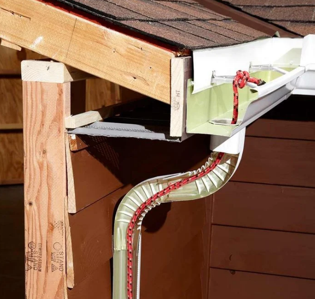 - Tie a synthetic rope (like nylon) to a gutter hanger.
