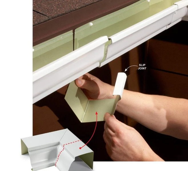 - White and brown gutters: home centers sell matching gutters and slip joints.