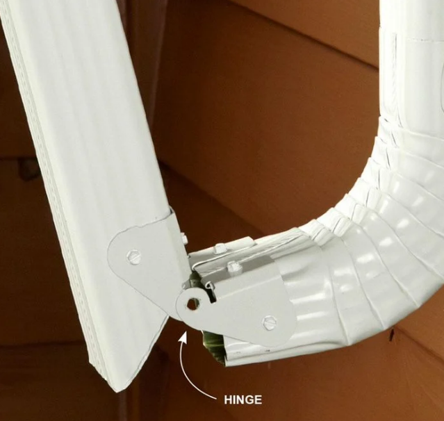 - Install a two-piece downspout hinge (e.g., Zip Hinge) with sheet-metal screws.