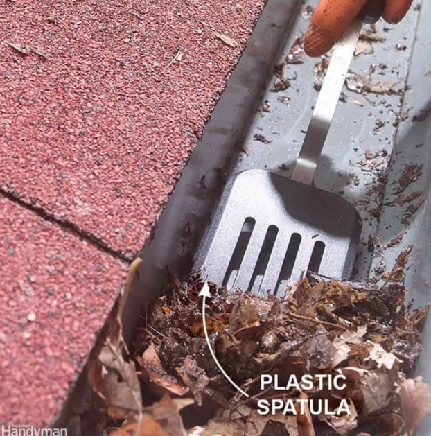 An old plastic spatula makes a perfect gutter scoop: