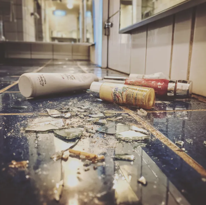 His face changed. Rage surged up. He grabbed my shoulder, shouted something incoherent, then shouldered past me into the bathroom.