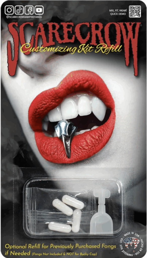 Scarecrow fangs weren’t like those big, goofy plastic teeth you clamped into your mouth as a kid. They were designed to be custom-fitted to your actual teeth.