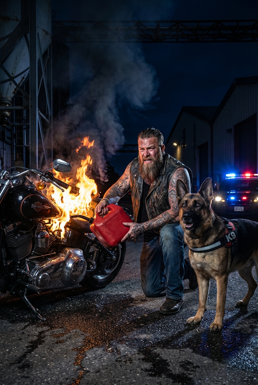 “The Night a Biker Set Fire to His Own Beloved Harley to Save the Injured K9 Who Had Never Left His Side—and the Gang Leader Who Tried to Destroy Them All Learned That Justice Comes With a Price”