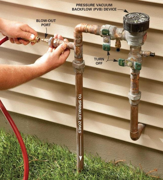 You can pay the irrigation company to blow out your sprinkler system every fall, or you can use your air compressor and do it yourself. You just have to be careful not to leave any water in the line or it might freeze over the winter and burst a pipe.